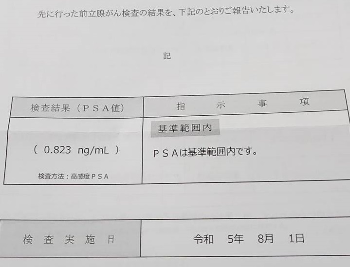 前立腺がんはとりあえず心配ないようです。