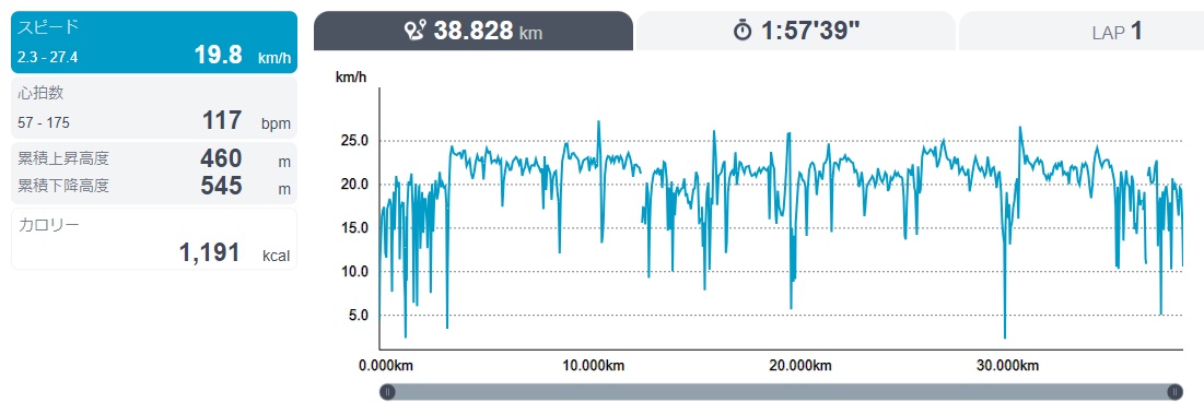 風が弱く、サイクリングコースも空いていましたので、今日は安心してペースを上げられました。